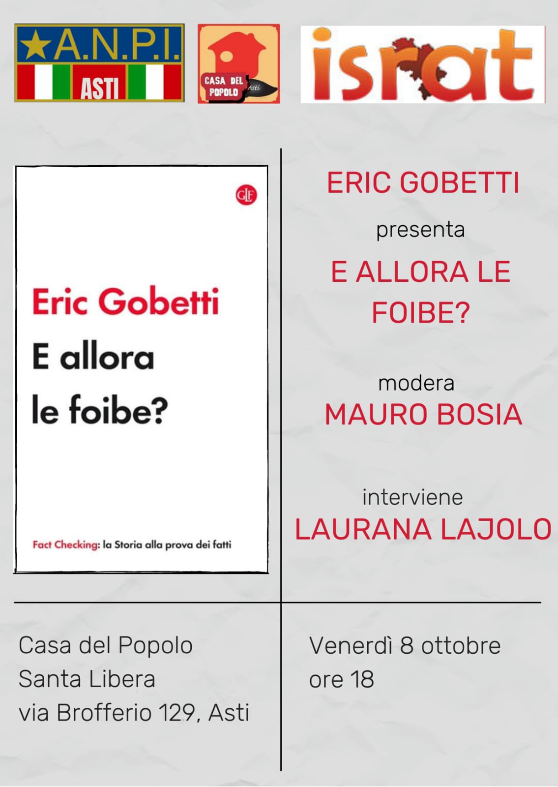 Federico Fornaro presenta il suo ultimo libro e ne discute con Mario Renosio e Vittorio Rapetti. Modera Annamaria Tosti.