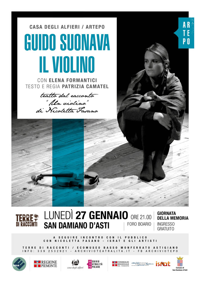 Si tratta di un monologo teatrale tutto al femminile che si dipana come un racconto giallo e assume le misteriose atmosfere di un thriller a carattere storico. Un vecchio violino entra prepotentemente nella quotidianità di una donna, ricercatrice di professione, costringendola ad abbandonare il suo rassicurante, scientifico metodo di indagine e chiedendole di dedicarsi, anima e cuore, alla ricostruzione di una storia da salvare dall’oblio. Quel violino uscito dalla polvere di una cantina pare dotato di volontà propria: stride, geme, chiama con veemenza e ottiene ascolto. E racconta la vicenda di una famiglia ebrea sfollata ad Asti al tempo delle leggi razziali e della guerra, con gli immancabili risvolti di sradicamento, discriminazione, deportazione.