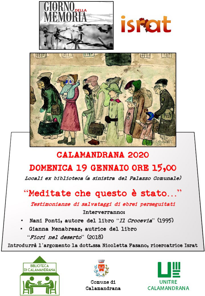 Con Nicoletta Fasano, ricercatrice Israt, ricostruiremo insieme i momenti della deportazione astigiana, dall'arresto al viaggio verso il Lager, alla negazione della dignità, alla liberazione. Un “viaggio” nella disumanizzazione per capire com'è potuto accadere. Ma per capire anche i difficili ritorni ad una normalità sognata.