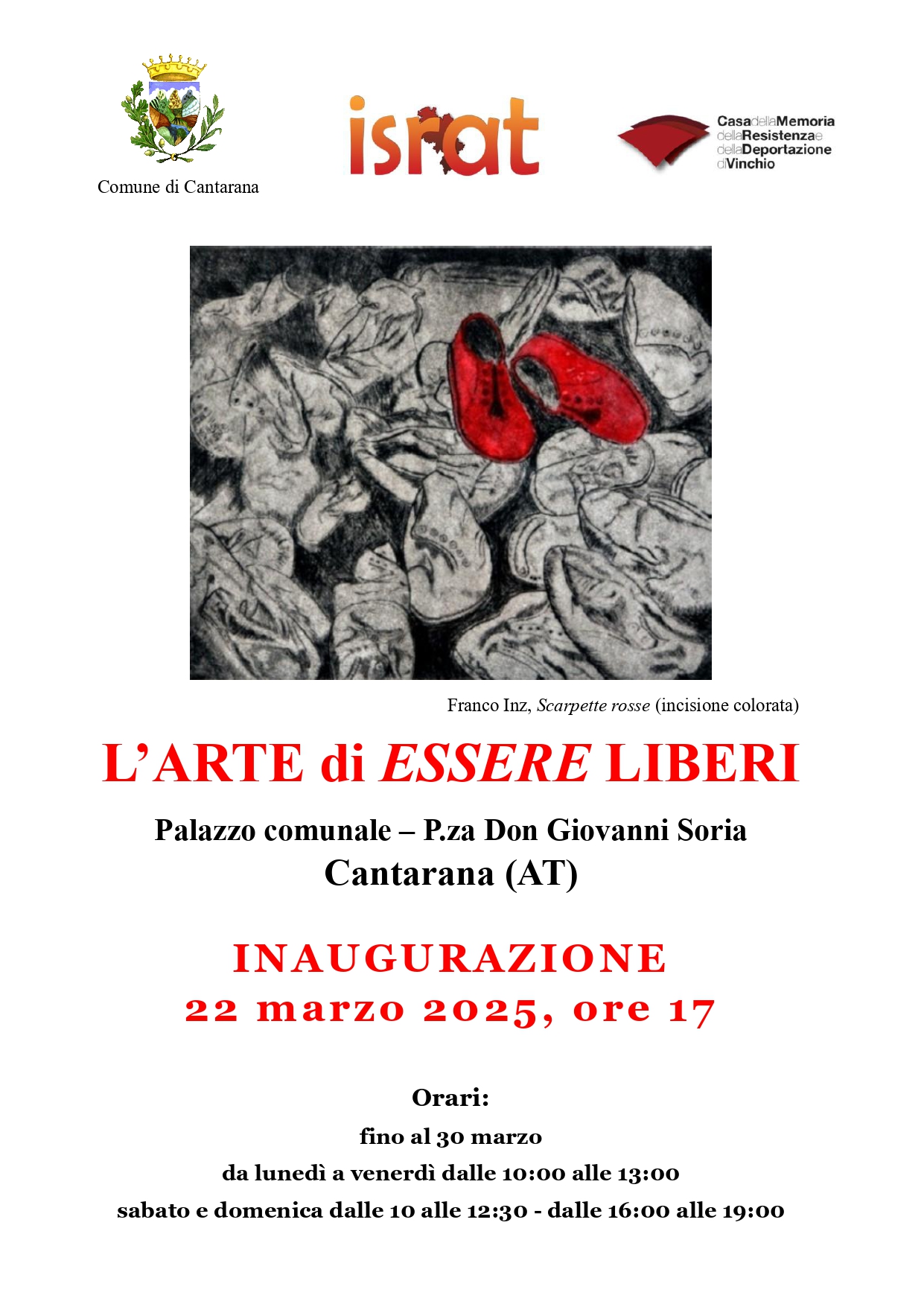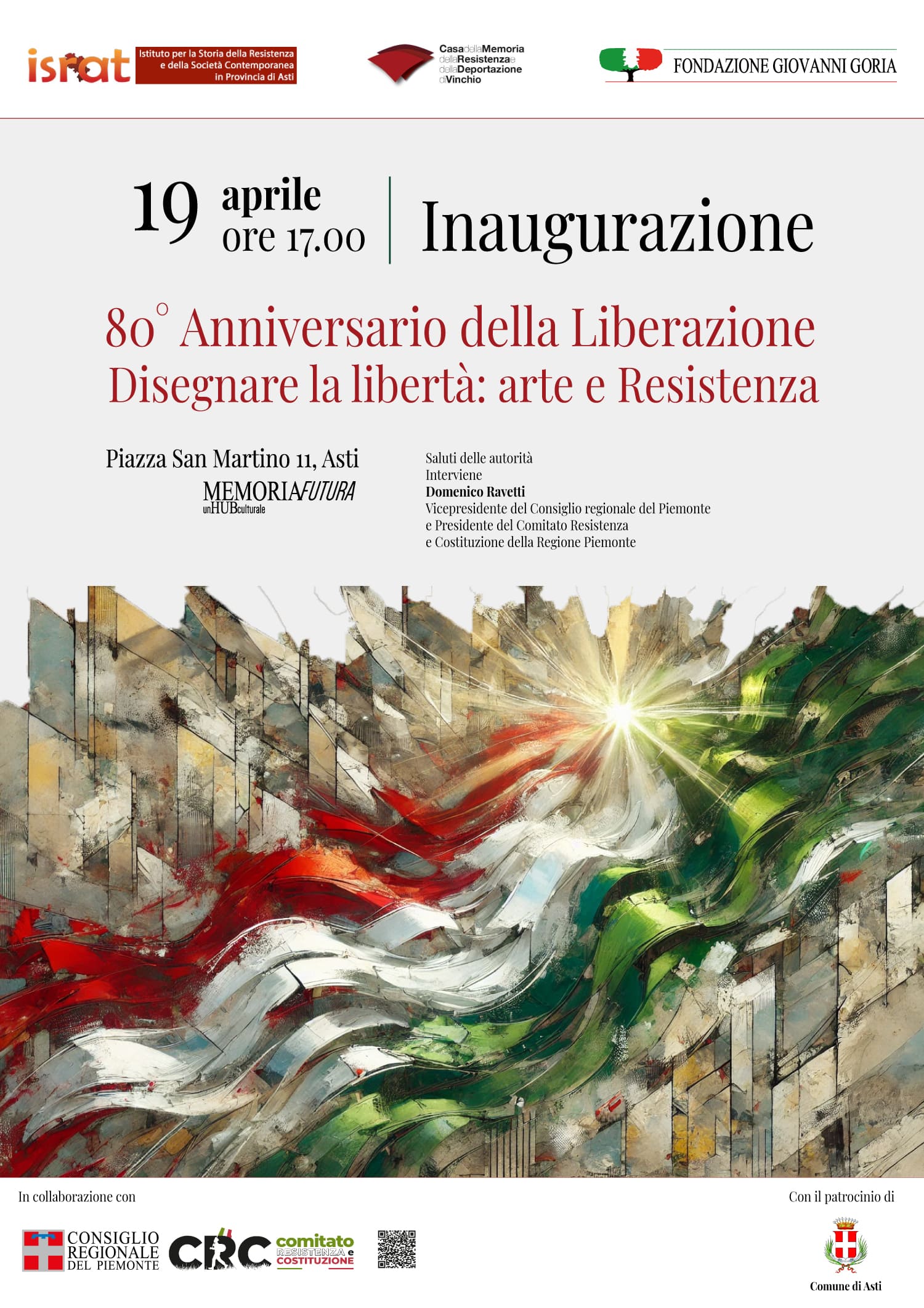 In occasione dell'80° anniversario della Liberazione, l'Israt e la Casa della Memoria di Vinchio, in collaborazione con il Consiglio Regionale del Piemonte-Comitato Valori Resistenza e Costituzione, con il patrocinio del Comune di Asti, inaugurano il 19 aprile 2025, alle ore 17, la mostra d'arte dal titolo "Disegnare la libertà: arte e