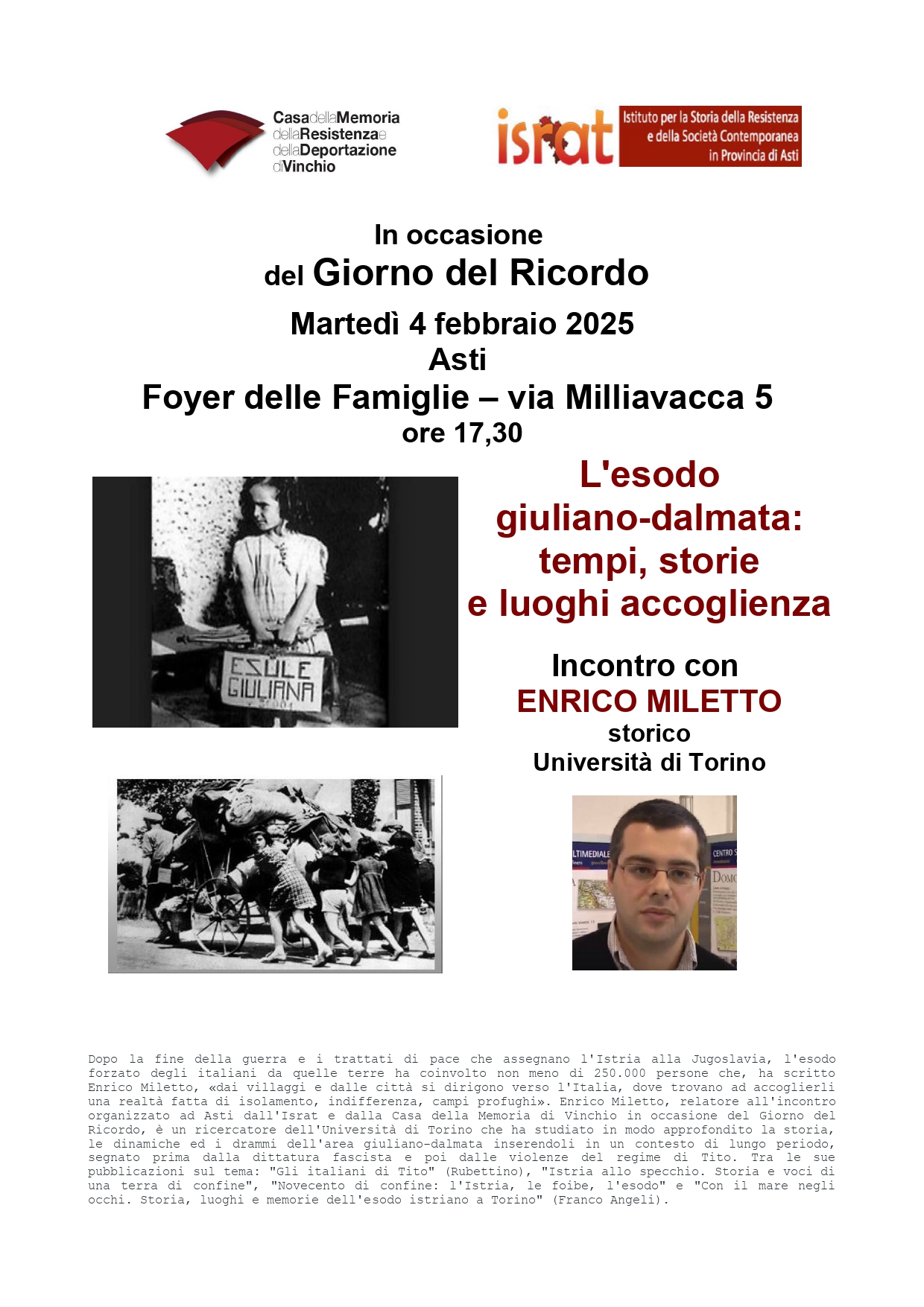 L'esodo giuliano-dalmata: tempi, storie e luoghi accoglienza