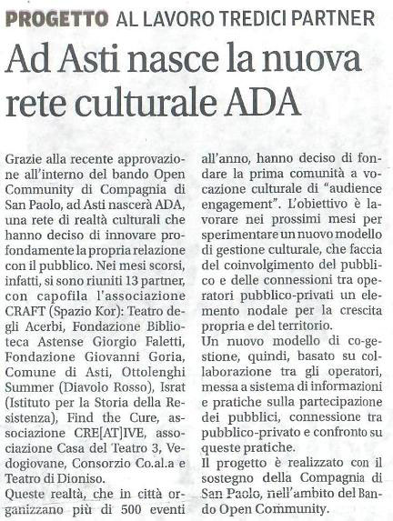 L'ISRAT aderisce alla nuova rete culturale ad Asti si chiama ADA Scritto il 08 Gennaio 2019. Tags: Iniziative 2019