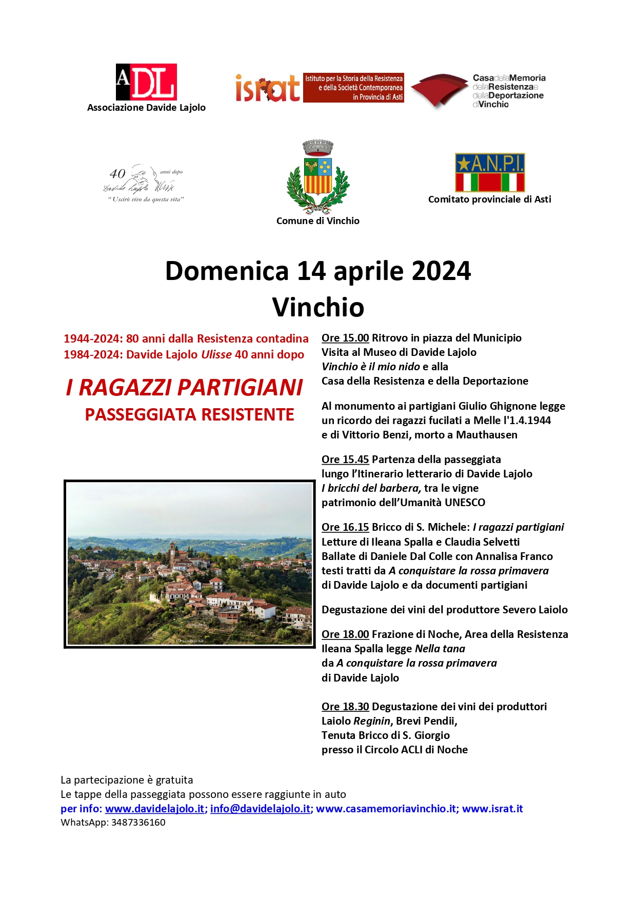 Ore 15.00 Ritrovo in piazza del Municipio Visita al Museo di Davide Lajolo Vinchio è il mio nido e alla Casa della Resistenza e della Deportazione
