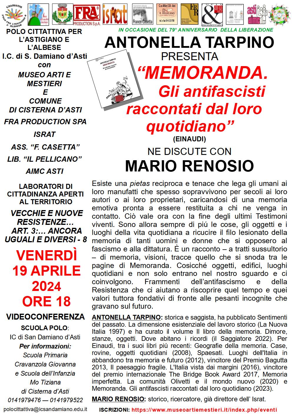 Videoconferenza - 19/04/2024 - Memoranda. Gli antifascisti raccontati dal loro quotidiano