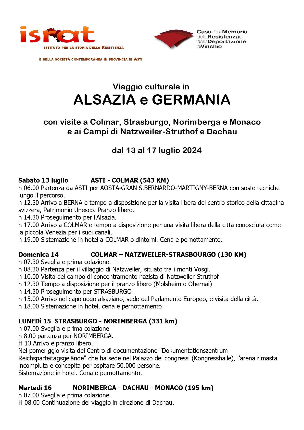 con visite a Colmar, Strasburgo, Norimberga e Monaco e ai Campi di Natzweiler-Struthof e Dachau