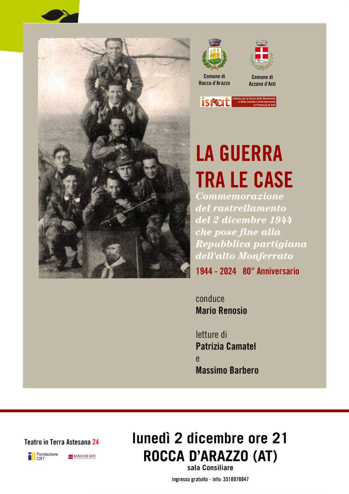 Commemorazione del rastrellamento del 2 dicembre 1944 che pose fine alla Repubblica partigiana dell'alto Monferrato